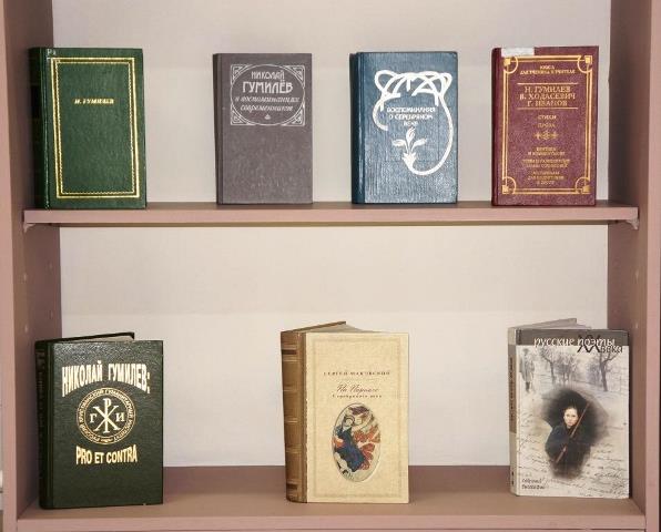 Николай Гумилев вошёл в историю русской литературы, как поэт, переводчик и художественный критик. Кроме стихотворений, в его творческое наследие вошли и этнографические заметки о жизни народов Африки. На выставке представлены сборники поэта: «Лирика», «Стихотворения и поэмы» и другие. Также пользователи библиотеки смогут познакомиться с книгами Майкла Баскера «Ранний Гумилев: путь к акмеизму», «Николай Гумилев в воспоминаниях современников», в которых авторы дают возможность читателю наиболее полно познакомиться с жизнью и деятельностью русского поэта.