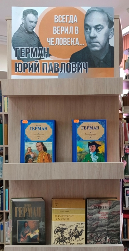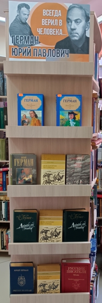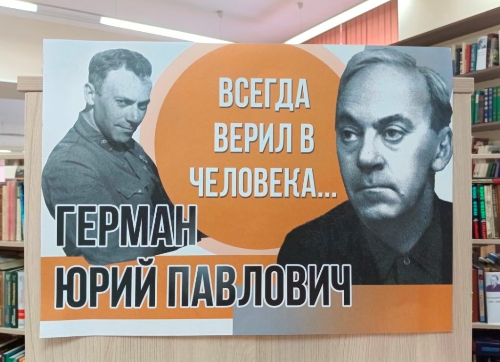В рамках цикла выставок о писателях-фронтовиках к 80-летию Победы в Великой Отечественной войне в Центральной городской библиотеке открылась книжная выставка-портрет «Всегда верил в человека», посвящённая творчеству юбиляра Юрия Павловича Германа. В этом году 4 апреля исполняется 115 лет со дня его рождения (1910-1967).