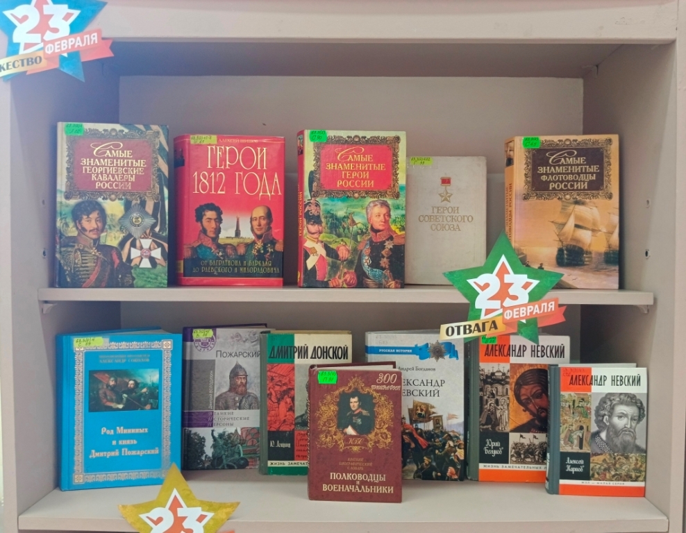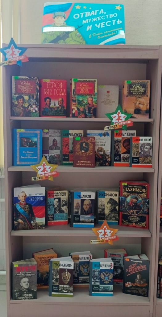 Ко Дню защитника Отечества в Центральной городской библиотеке оформлена книжная выставка-просмотр «Отвага, мужество и честь».