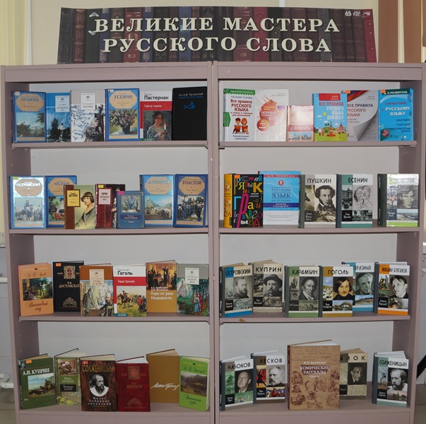 На книжной выставке «Великие мастера русского слова» представлены произведения русской литературы от Пушкина и Достоевского до Булгакова и Солженицына, от Фета и Некрасова до Бродского и Цветаевой. Например, такие, как «Евгений Онегин» и «Преступление и наказание», «Мастер и Маргарита» и «Архипелаг Гулаг», «Русские женщины» и «Часть речи».