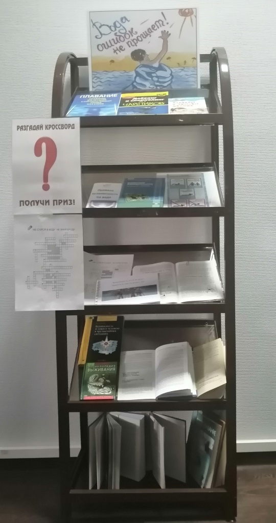 Литература, представленная на книжной выставке «Вода ошибок не прощает», поможет вам познать правила безопасности на воде, овладеть техникой отдыха и тем самым предупредить от несчастных случаев.