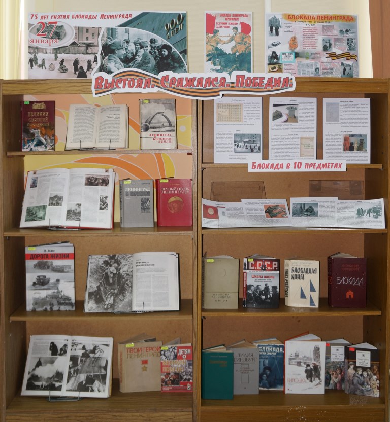 К 75-летию освобождения Ленинграда от блокады, библиотекари Центральной городской библиотеки подготовили книжную выставку «Выстоял. Сражался. Победил».