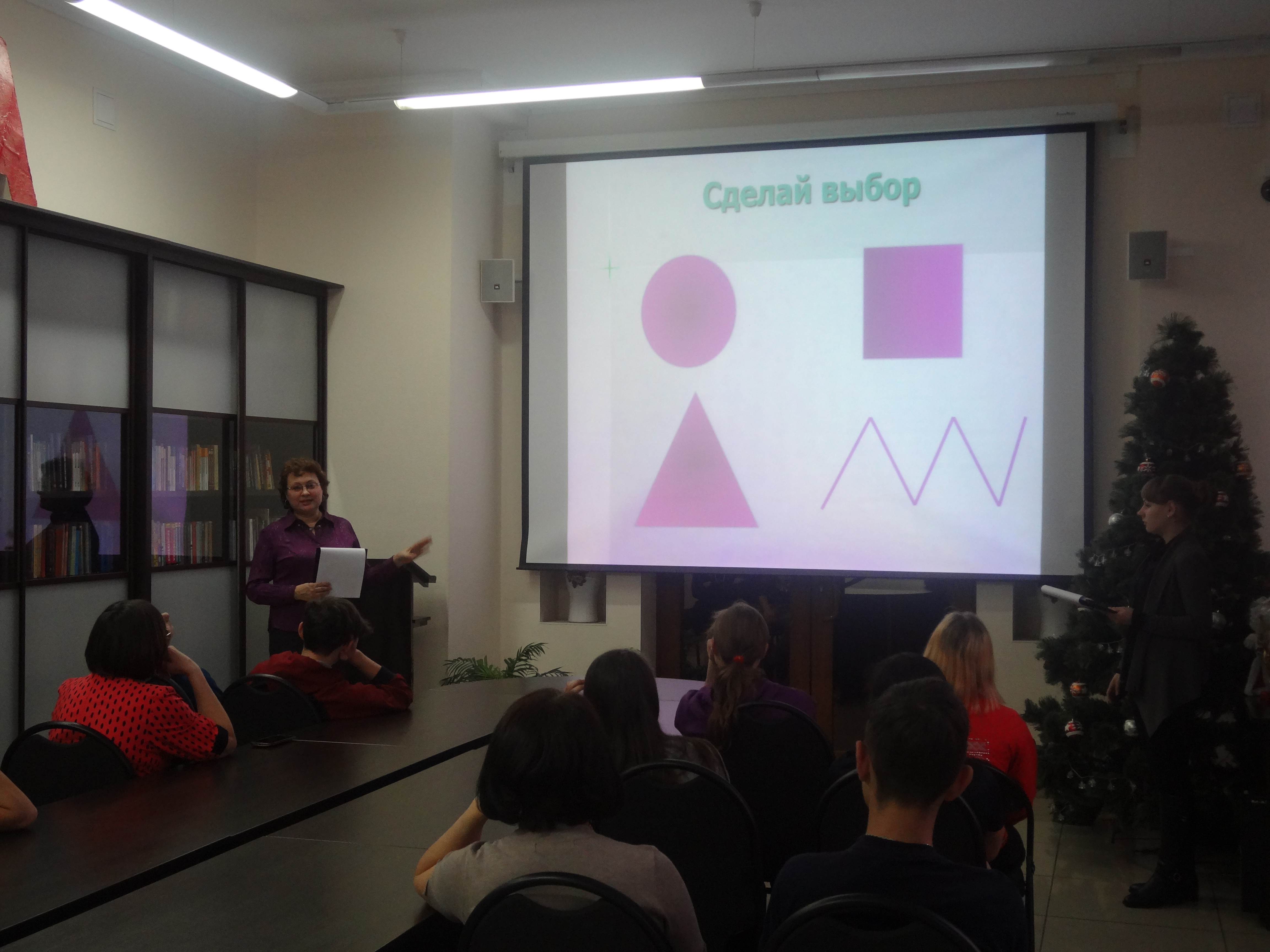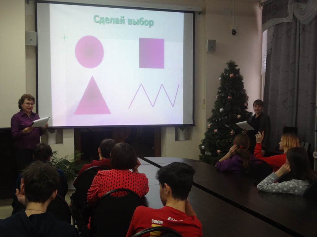 Вместе с библиотекарями ребята попытались определить свои желания и способности, понять к какому типу профессий себя отнести: человек – техника, человек – человек, человек – природа, человек – знаковая система, человек – художественный образ. Подросткам представилась возможность опробовать графический тест на выявление своих способностей.