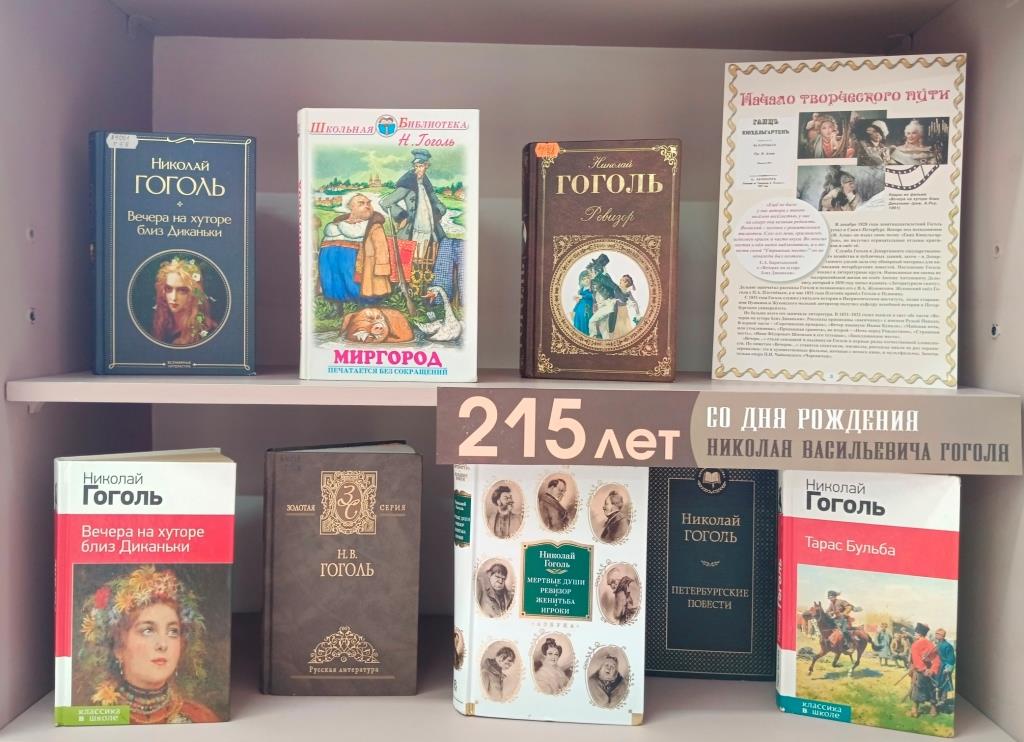 Книжная выставка-портрет, посвящённая 215-летию со дня рождения русского прозаика, драматурга, критика, публициста Николая Васильевича Гоголя, открылась в Центральной городской библиотеке.