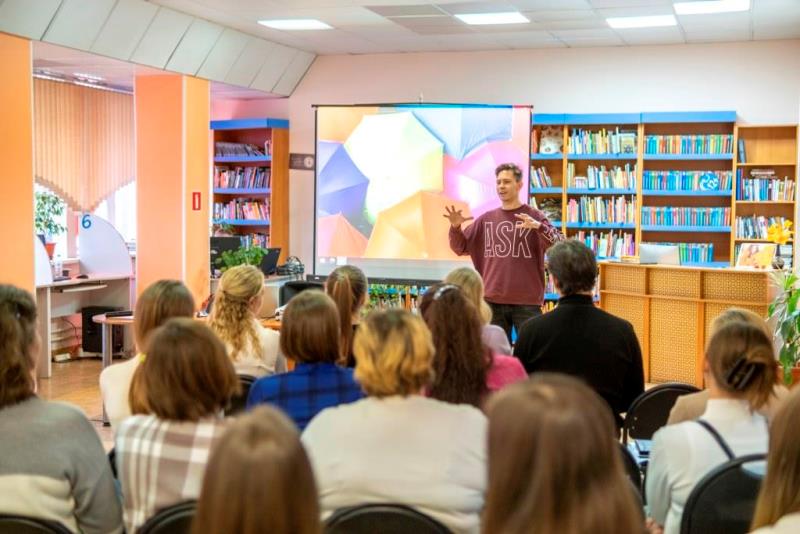Андрей Назаров – член совета молодых литераторов Кузбасса, стендапер и организатор литературной студии «Привет, Андрей!» поделился своим опытом работы с молодой аудиторией, рассказал, как общаться с молодежью на равных, что нужно учесть при подаче материала, как научиться импровизировать и делать это свободно.