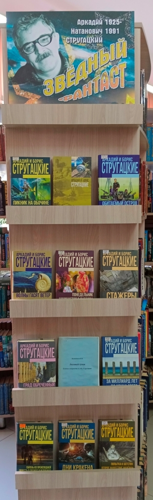Книжная выставка, посвящённая 100-летию со дня рождения писателя-фантаста Аркадия Натановича Стругацкого, советского писателя, сценариста, переводчика, оформлена в Центральной городской библиотеке.