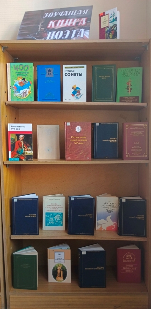 К этому событию в Центральной городской библиотеке оформлена выставка, на которой представлены книги – сборники стихотворений поэтов, накопленных великой русской литературой за несколько столетий её существования. Посетители выставки смогут ознакомиться с лучшими стихотворениями поэтов разных направлений и поколений, поэтических школ и литературных течений.