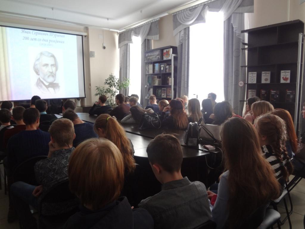 Ребята узнали о детстве и юности писателя, об отношениях с жестокой и властной матерью, о его верной любви к Полине Виардо, о жизни за границей, об увлечении охотой, о достижениях в литературе. Демонстрировались слайды с портретами и фотографиями Тургенева. На встрече присутствовало около 50-ти человек.