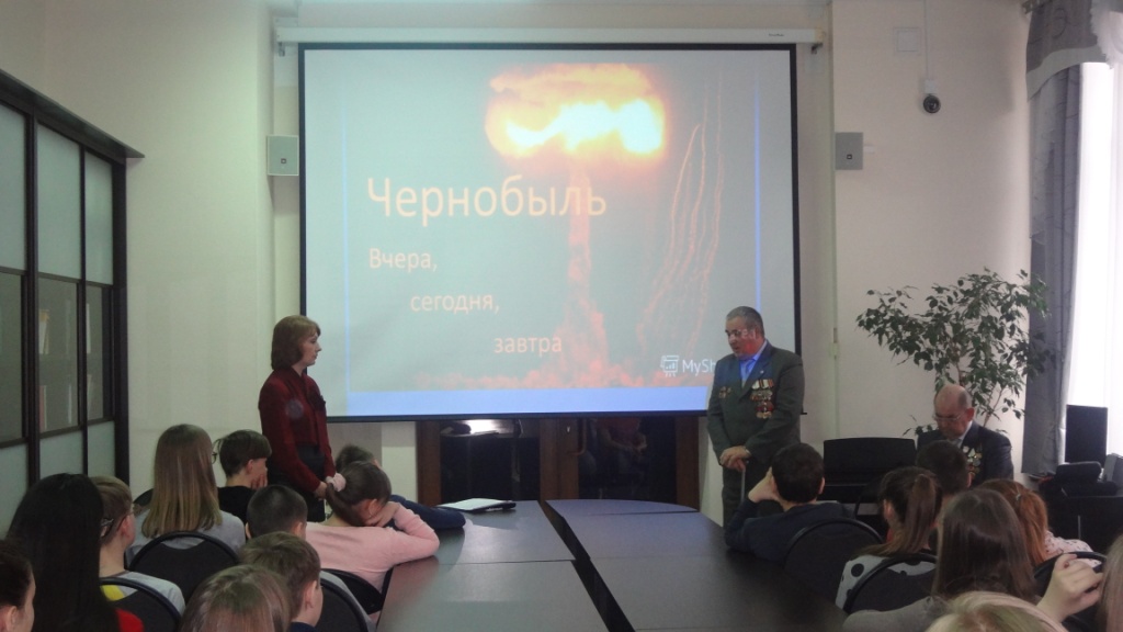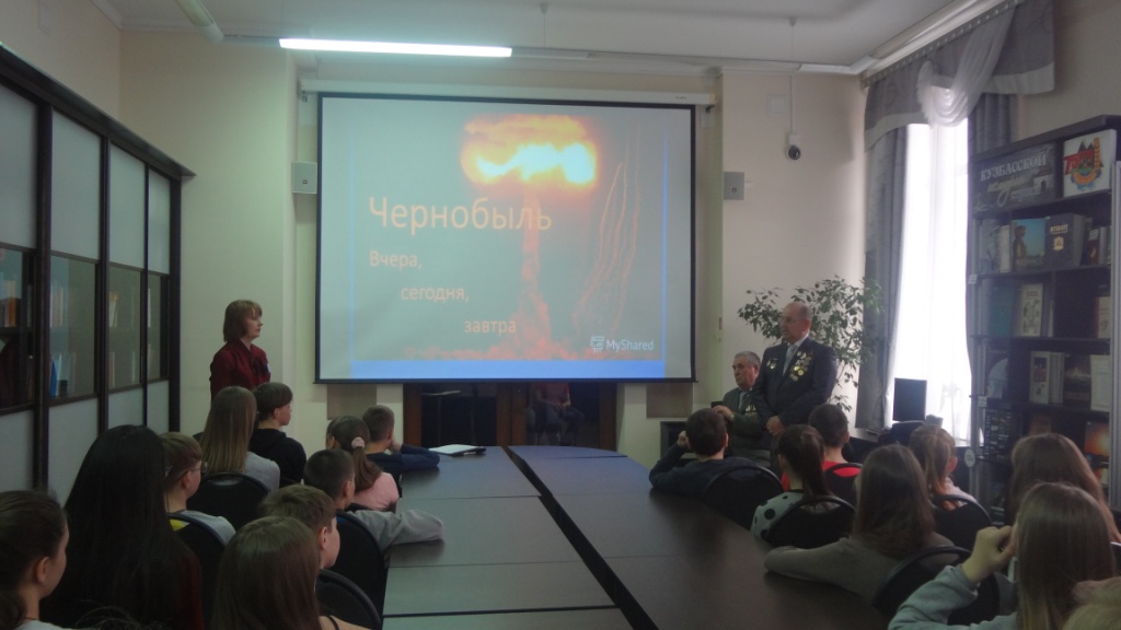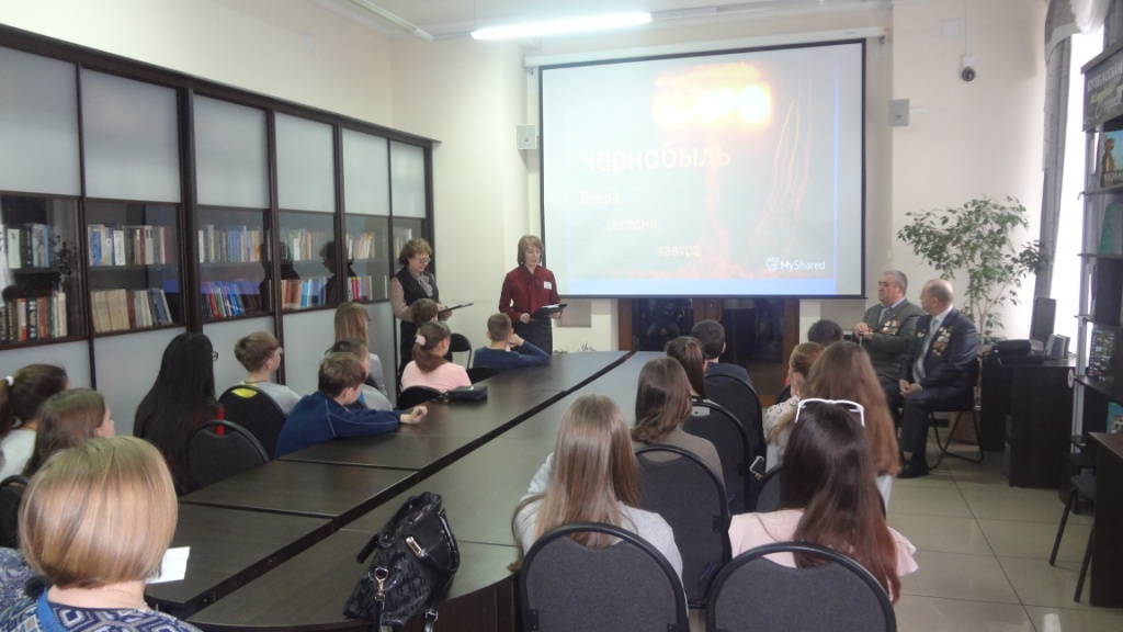 Учащиеся школы № 19 узнали о самой масштабной катастрофе в истории человечества – об аварии на Чернобыльской атомной электростанции. Ведущие вечера – библиотекари Черницова О.Д. и Арзамаскина И.В. познакомили ребят с хроникой чернобыльских событий после взрыва на АЭС. Учащиеся узнали о воздействии радиации на всё живое, о пожарных, которые погибли при тушении пожара, возникшего после взрыва и т.д. На встречу со студентами и школьниками были приглашены ликвидаторы последствий аварии на ЧАЭС – Юрий Владимирович Тишук и Иван Иванович Литвиненко. Гости делились воспоминаниями о тех страшных событиях, чтобы они смогли прочувствовать трагизм и масштаб случившегося в Чернобыле, оценить силу духа и мужество тех, кто отдал свой долг родине, ликвидируя последствия аварии. Встреча сопровождалась показом слайдов и видеороликов.