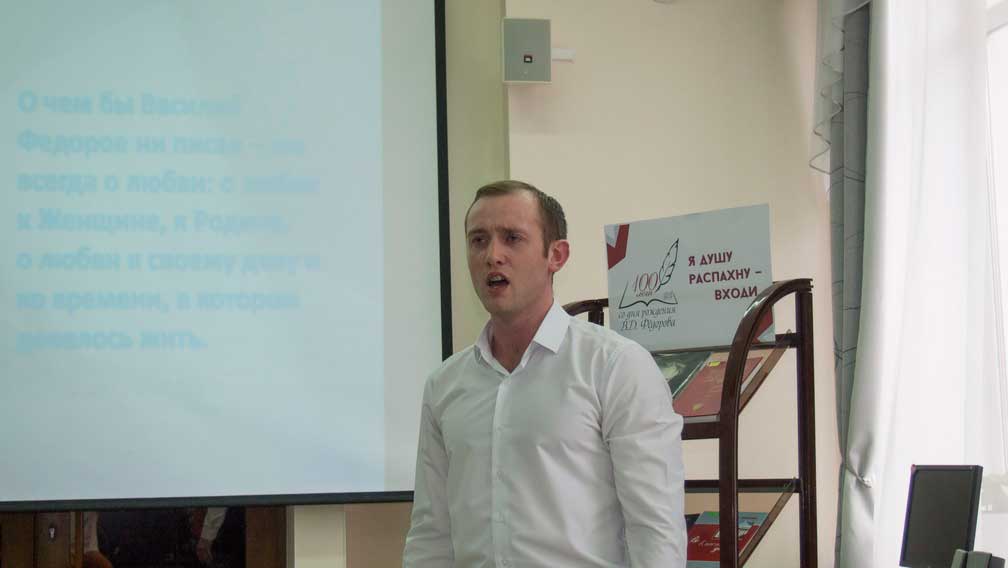 12 апреля в Центральной городской библиотеке прошел городской конкурс чтецов «Я – сын твоих полей», посвященный 100-летию со дня рождения кузбасского поэта, члена Союза писателей СССР, лауреата Государственной премии СССР В.Д. Фёдорова.