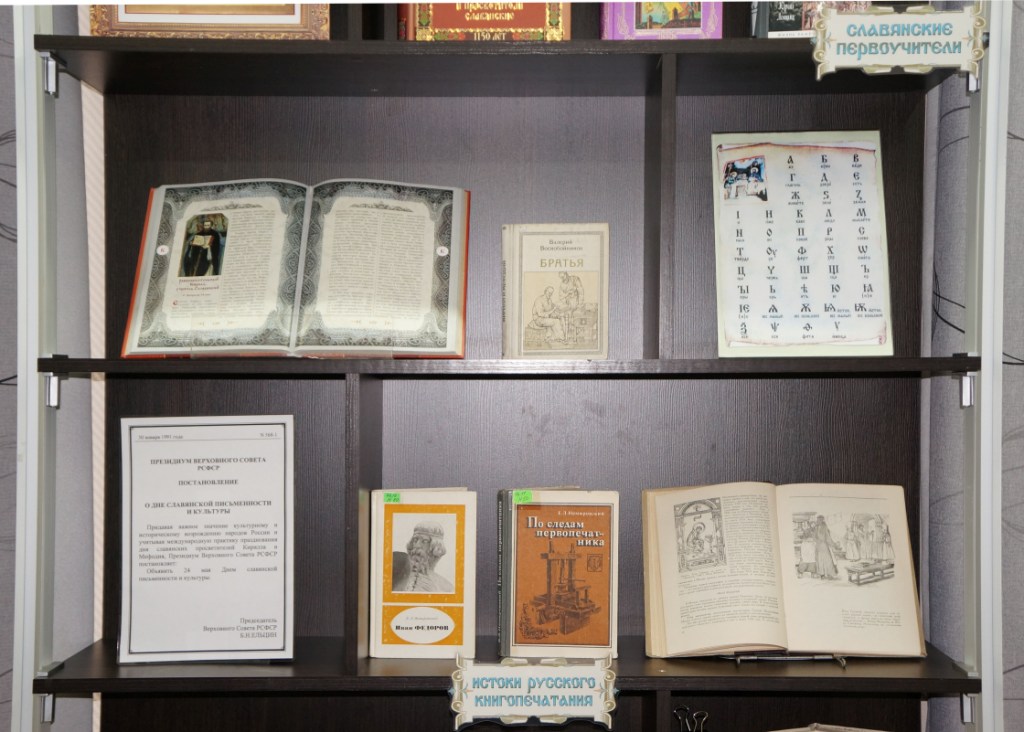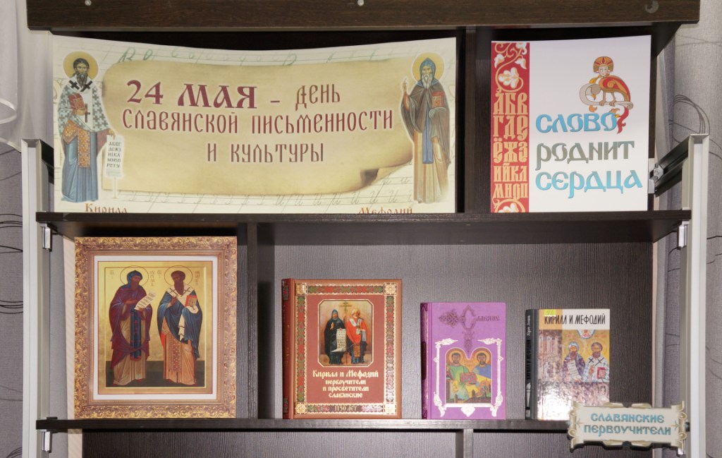 К этой знаменательной дате, библиотекарями отдела делового чтения подготовлена книжно-иллюстративная выставка «Слово роднит сердца». Из литературы, представленной на выставке, вы узнаете о жизни и деятельности великих славянских просветителей, святых равноапостольных братьев Кирилла и Мефодия. Именно они стали основоположниками славянской письменности. Каждый человек, который говорит на русском языке, должен гордиться и дорожить своей культурой и историей, должен знать и хранить в своей памяти имена первых славянских просветителей.