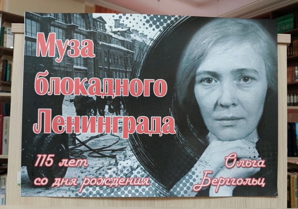 В рамках цикла выставок о писателях-фронтовиках к 80-летию Победы в Великой Отечественной войне в Центральной городской библиотеке открылась книжная выставка «Муза блокадного Ленинграда», посвященная творчеству русской поэтессы Ольги Фёдоровны Берггольц. В этом году 16 мая исполняется 115 лет со дня её рождения (1910-1975).