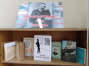 В Центральной городской библиотеке оформлена книжная выставка-портрет «Необъятный мир Чехова», посвященная юбилею русского писателя, талантливого драматурга, академика, врача по специальности.
