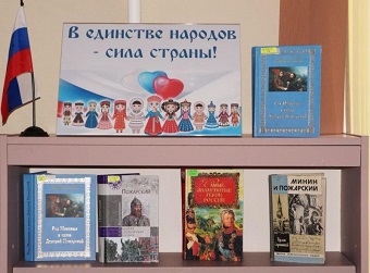 Выставка-просмотр «Сила России в единстве народов», посвященная Дню народного единства, оформлена в Центральной городской библиотеке.