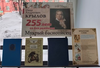 Книжная выставка-портрет «Мудрый баснописец», посвященная 255-летию со дня рождения русского баснописца, публициста, издателя сатирико-просветительских журналов Ивана Андреевича Крылова, открылась в Центральной городской библиотеке. Известен как автор басен, таких как «Ворона и лисица», «Стрекоза и муравей», «Лебедь, рак и щука». Многие фразы и выражения из басен Крылова стали фразеологизмами в русском языке.