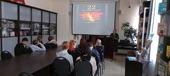 Урок мужества «День памяти и скорби» для ребят из «Социально-реабилитационного центра для несовершеннолетних» прошел в Центральной городской библиотеке 22 июня.