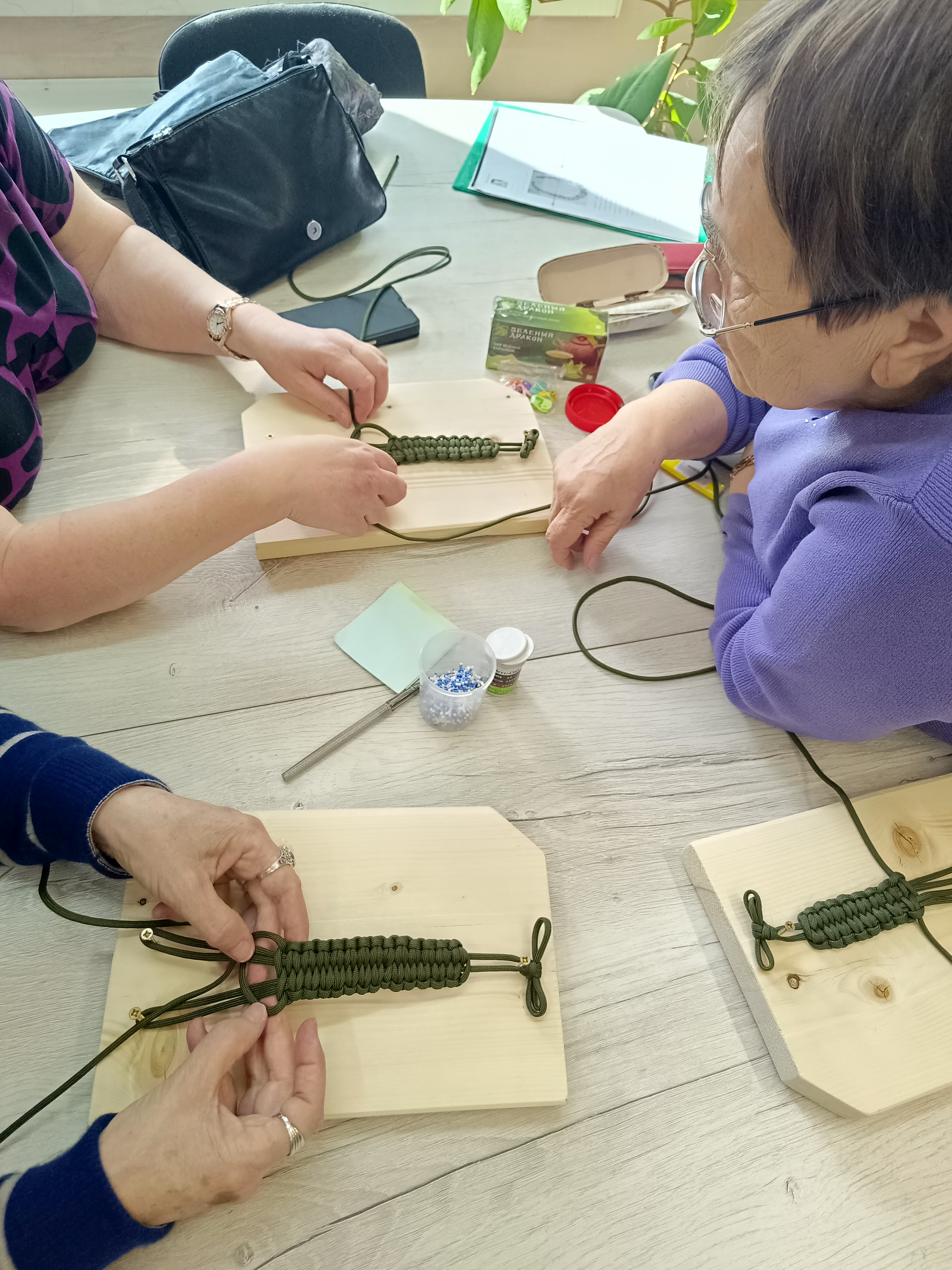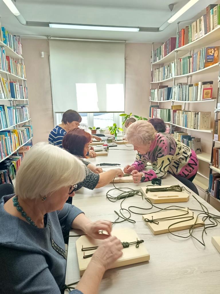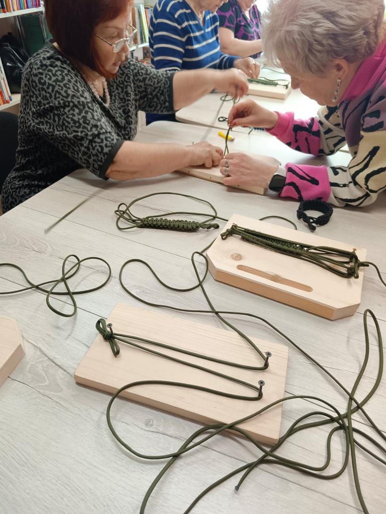 Вновь участницы клуба «Ажиотаж» провели мастер-класс по плетению «Браслетов выживания». Состоялась встреча в библиотеке «Центр национальных культур» 19 марта.