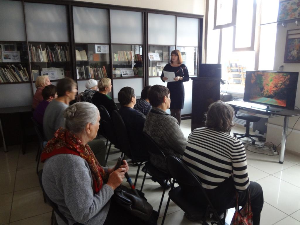 10 октября в Центральной городской библиотеке состоялось очередное заседание клуба «Исток» городского общества инвалидов, посвящённое 75-летию оперной певицы Тамары Синявской и 120-летию со дня рождения поэта-песенника Василия Лебедева-Кумача.