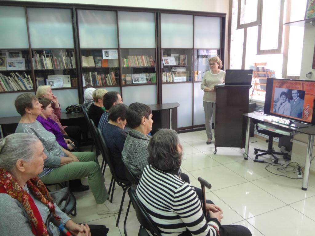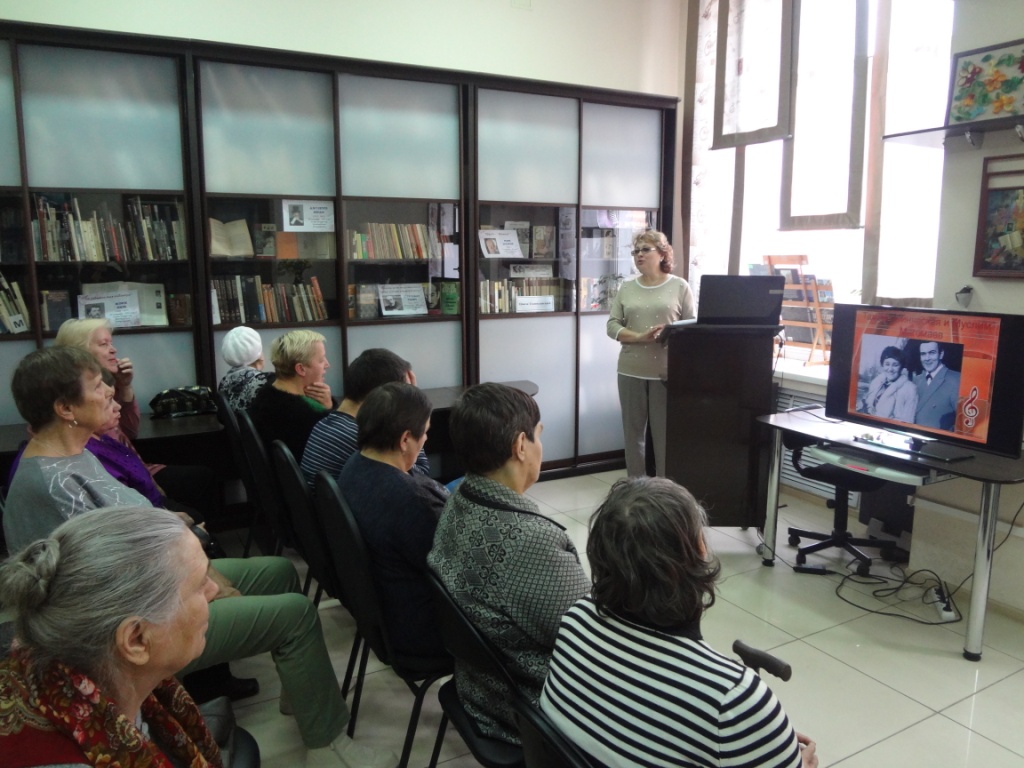 «Ты – моя мелодия» – музыкальный час. Участники клуба узнали о жизни и о великой любви двух великих людей – Муслима Магомаева и Тамары Синявской, о том, как зарождалось их чувство, которое они сохранили на протяжении 35 лет! В 1970-х в СССР без Муслима Магомаева не обходился ни один государственный концерт, ни один новогодний «Голубой огонёк». Его популярность была настолько велика, что доходило до истерии поклонников – как-то автомобиль со своим кумиром они несли после концерта на руках. И не было в стране девушки или женщины, которая не была очарована его голосом и сражена его обаянием. Немало женских сердец было разбито, когда Муслим Магомаев женился на приме Большого театра Тамаре Синявской. Демонстрировались видеосюжеты с песнями в исполнении Магомаева и Синявской.