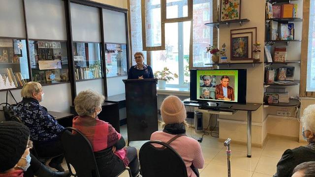 Участники клуба во время кино-беседы «Люди. Роли. Жизнь», посвящённой 95-летию со дня рождения Петра Вельяминова, узнали о жизни и творчестве народного артиста РСФСР. Подлинный любимец публики достаточно поздно пришёл в кинематограф. Но первая же роль Захара Большакова в культовой ленте «Тени исчезают в полдень» принесла ему успех. Дальнейшие роли в фильмах «Вечный зов», «Пираты XX века», «Сладкая женщина» закрепили его славу. В судьбе одного из любимейших советских актёров было много испытаний, о которых и узнали присутствующие.