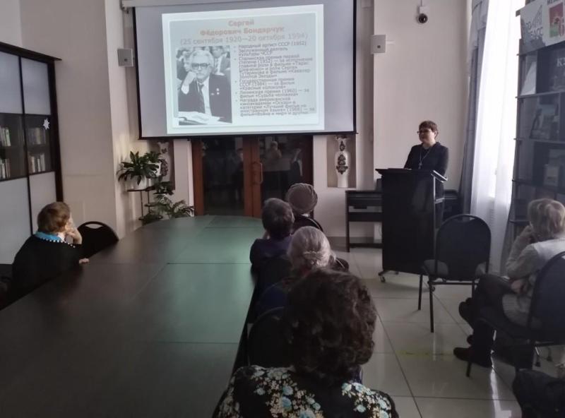 Заседание клуба «Исток» городского клуба инвалидов, прошедшее в Центральной городской библиотеке 9 декабря, было посвящено 90-летию со дня рождения режиссёра и артиста С. Бондарчука и 85-летию артиста В. Ливанова.