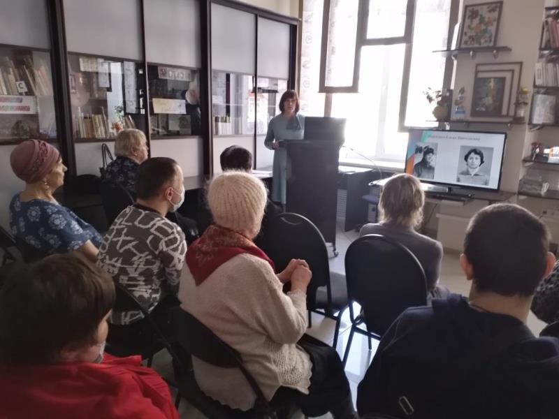 Участники клуба «Исток» Городского общества инвалидов познакомились с биографиями женщин из самых различных областей деятельности. Беседа началась со знакомства с биографиями тех, чьи имена увековечены в названиях зданий, площадей, мемориальных досок. Это Белоусова Татьяна Филитеровна – «Заслуженный работник культуры РФ», Панченко Елена Николаевна – мастер спорта СССР по горным лыжам, Чолах Тамара Викторовна – учитель, директор школы № 6 и другие. Затем в беседе были представлены биографии женщин, чьи имена включены в издание Центральной городской библиотеки «Знай наших». Это Дынник Екатерина Олеговна – мастер спорта международного класса по боксу, Алла Михеева – актриса театра, кино и телевидения, Мустафа Наталья – «Заслуженный мастер спорта по спортивному туризму» и другие.