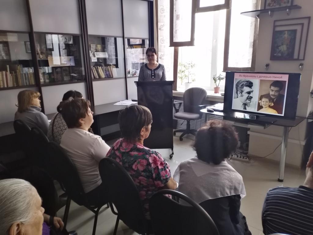 Участники клуба с большим интересом слушали рассказ библиотекаря о жизни и творчестве героев встречи. Демонстрировались видеоролики с песнями в исполнении Олега Анофриева и Яна Френкеля, которым присутствующие с удовольствием подпевали.