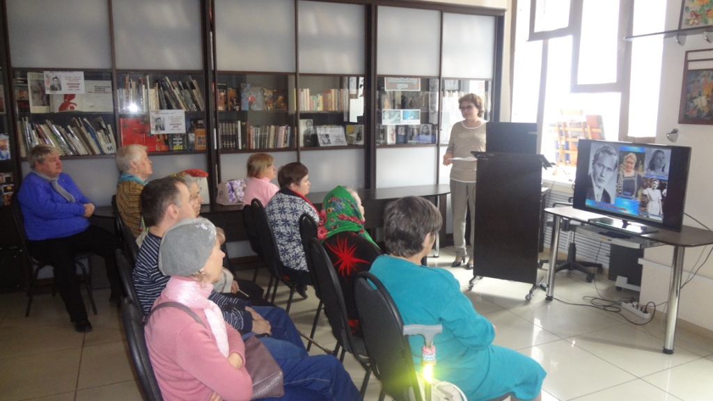 «Человек земли» – кино-час. Гениальный писатель, режиссёр, сценарист и актёр Василий Макарович Шукшин всем своим творчеством напоминает нам, что в основе всего стоит простой человек. Он и есть – суть России. Удивительно, как можно через образы простого человека ясным, понятным, доходчивым, но таким сочным языком показать, что такое душа нашего народа. Так мог сделать только гениальный автор – Василий Шукшин. Библиотекарь Арзамаскина Ирина Владимировна рассказала людям с ограниченными возможностями о личной жизни Василия Макаровича. Подробно остановилась на его ролях в кино и на режиссёрских работах. Демонстрировались отрывки из фильмов с его участием «Два Фёдора», «У озера», «Печки-лавочки», «Калина красная», «Они сражались за родину».
