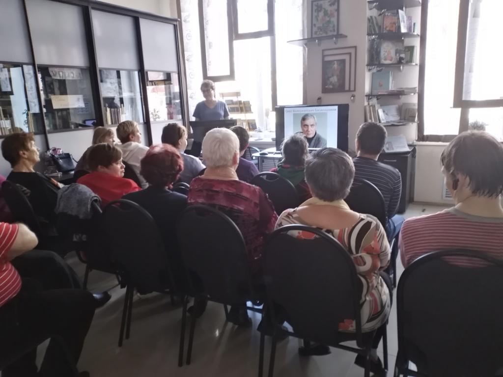 Во время беседы демонстрировались слайды с фотографиями героев встречи, фрагменты из фильмов с участием Олега Басилашвили и видеоклипы с песнями Игоря Крутого.