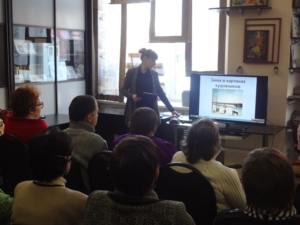 12 декабря в Центральной городской библиотеке для участников клуба «Исток» городского общества инвалидов прошёл вечер-вернисаж «Зима в изобразительном искусстве».