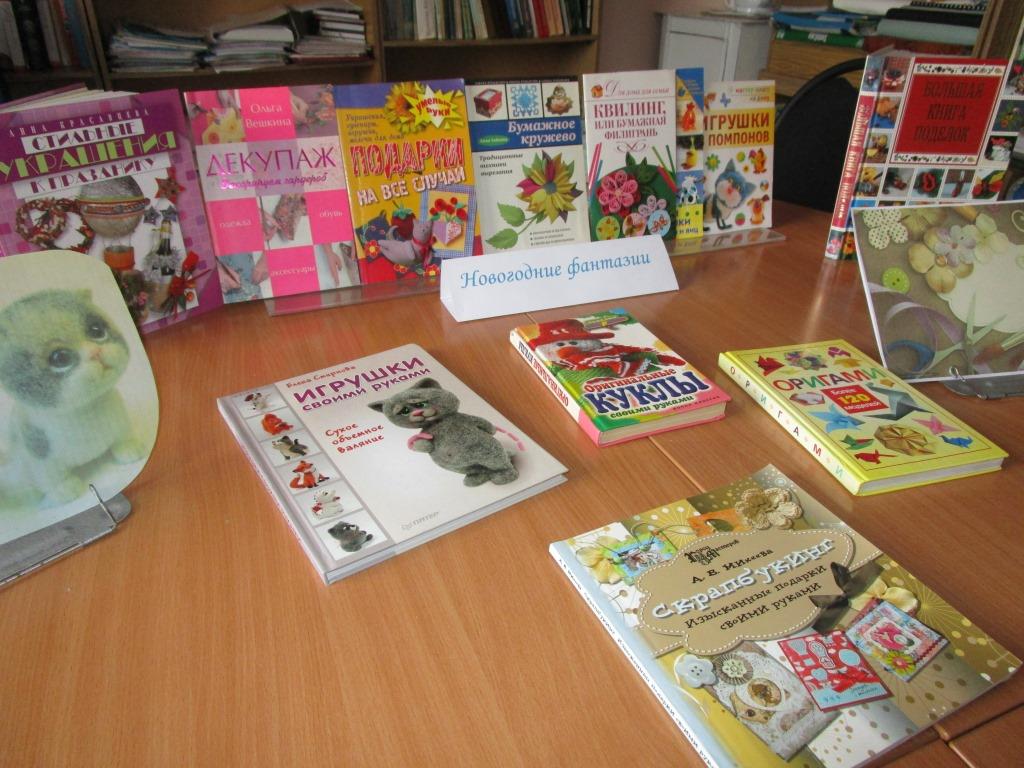 Обмениваться подарками на Новый год – давняя традиция, о том, как сделать из всевозможных материалов эксклюзивные и оригинальные сувениры и подарки своими руками, участницы клуба узнали из обзора книг, представленных на книжной выставке «Новогодние фантазии», подготовленной к мероприятию.