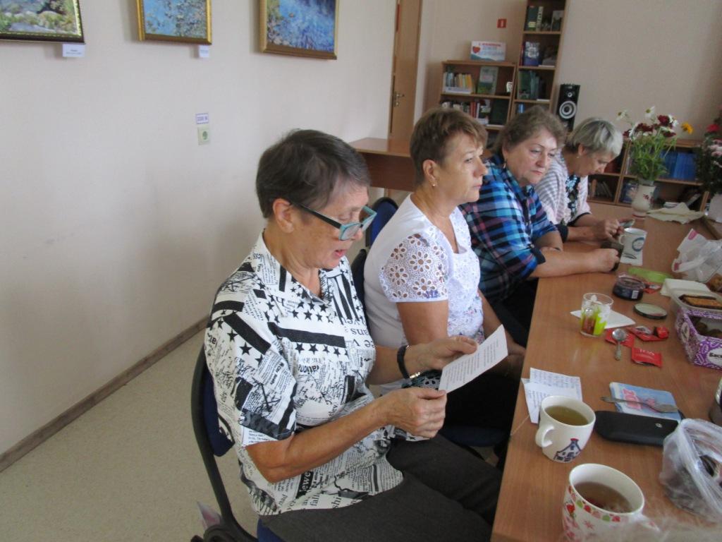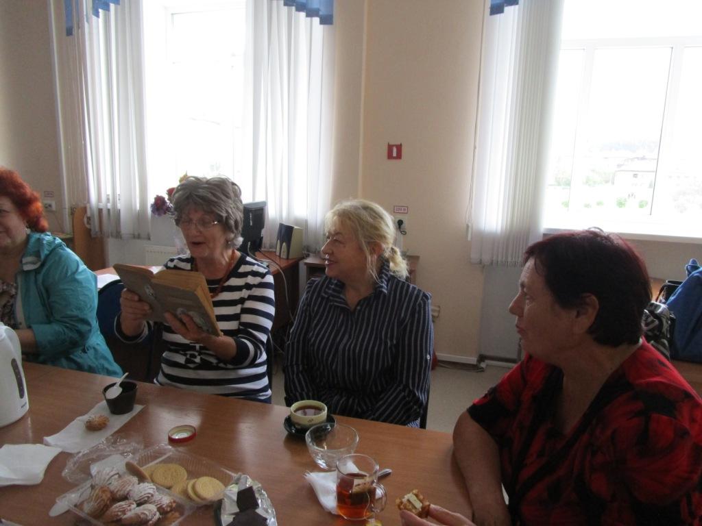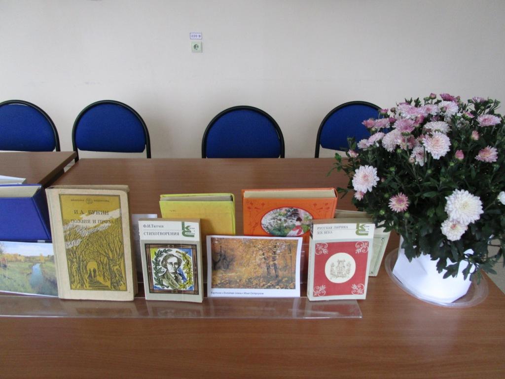 Участницы клуба читали стихи любимых поэтов: А.С. Пушкина, И.А. Бунина, Ф.И. Тютчева, А.Н. Майкова, С.А. Есенина. Руководитель клуба «Настроение» Фролова Н.П. познакомила женщин с творчеством белгородского поэта Н.Н. Грищенко. Во время встречи звучали произведения великих композиторов: Вивальди, Чайковского, Шопена. На книжной выставке, подготовленной к вечеру поэзии, были представлены книги любимых поэтов, репродукции известных художников: Левитана «Золотая осень», Жуковского «На веранде. Осень», Остроухова «Золотая осень», Кузнецова «Осенний пейзаж», Клевер «Осенний парк».