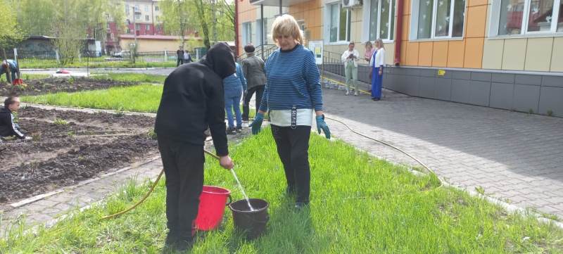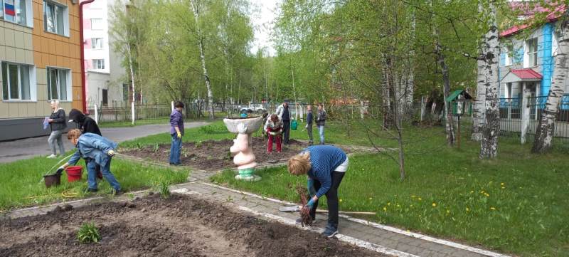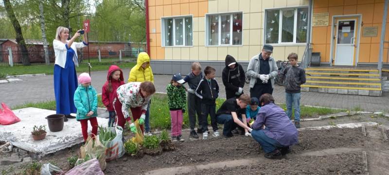Члены клуба «Незабудка» помогли с посадочным материалом: привезли со своих участков кустарники, многолетники и однолетнюю цветочную рассаду. Во время совместной посадки, каждый из воспитанников Центра смог принять участие в работе: выкопать лунку, полить водой из лейки, посадить растение. Так появилось 4 цветника, которые, несомненно, станут украшением территории Центра. Теперь дети будут продолжать вести наблюдения за их ростом, ухаживать и в дальнейшем смогут увидеть плоды своего труда.
