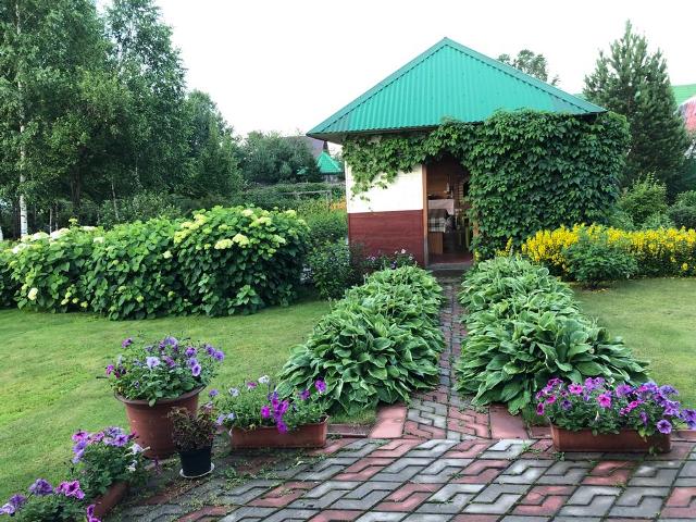 - Цветовые контрасты: яркость и разноцветье петуний у крыльца дома; сочетание нескольких в ряду очитков придают саду шарм, загадочность; много цветников преимущественно миксбордеров, где высажены лилии флоксы, розы. Сочетание нескольких в ряду очитков придают саду шарм, загадочность.