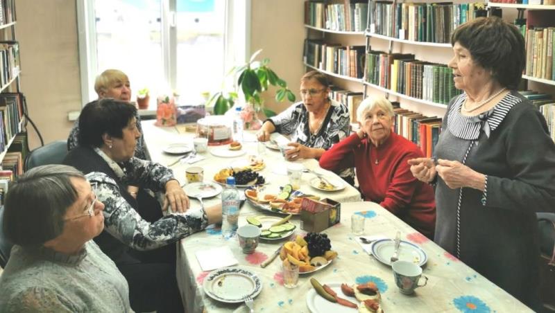 Участницы клуба читали стихи про осень, рассказывали друг другу истории за чашкой чая.