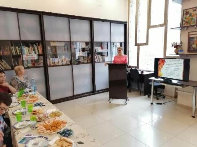 Участницы клуба во время кино-беседы «Люди. Роли. Жизнь», посвящённой 95-летию со дня рождения Петра Вельяминова, узнали о жизни и творчестве народного артиста РСФСР. Подлинный любимец публики достаточно поздно пришёл в кинематограф. Но первая же роль Захара Большакова в культовой ленте «Тени исчезают в полдень» принесла ему успех. Дальнейшие роли в фильмах «Вечный зов», «Пираты XX века», «Сладкая женщина» закрепили его славу. В судьбе одного из любимейших советских актёров было много испытаний, о которых и узнали присутствующие. Музыкальный калейдоскоп «Споёмте, друзья!», посвящённый 90-летию со дня рождения Леонида Дербенёва, познакомил присутствующих с музыкальным творчеством поэта-песенника. Леонид Петрович – автор сотен популярных песен, ставших настоящими хитами. Из-под его гениального пера вышло более двух тысяч стихов, прочно вошедших в жизнь соотечественников. Он писал о чувствах – о любви, надежде, страданиях. Многие его произведения представляли собой философские размышления о смысле жизни, о прошлом, или светлые мечты о будущем. На мероприятии демонстрировались отрывки из фильмов с участием Петра Вельяминова и звучали песни на стихи Леонида Дербенёва. Председатель клуба Огурцова Алла Георгиевна наградила участниц городской акции «Урожайные грядки» небольшими подарками и поздравила с Днём уважения старшего поколения.