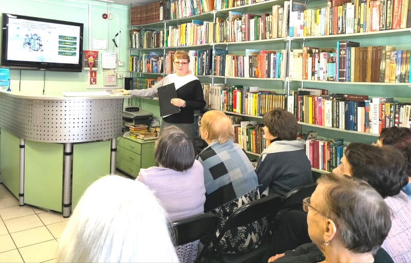 Познавательный час «Новогодние традиции разных стран» прошёл в библиотеке «Центр национальных культур» для ветеранов клуба «Огонёк» 19 января.