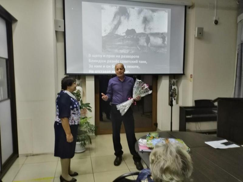 Эпиграфом вечера стали слова «Не дай забыть уроков прошлого». С помощью презентации Александра Николаевна рассказала о создании поэмы, над которой она трудилась 5 лет! Участники клуба «Ритм» Юрий Проскоков,