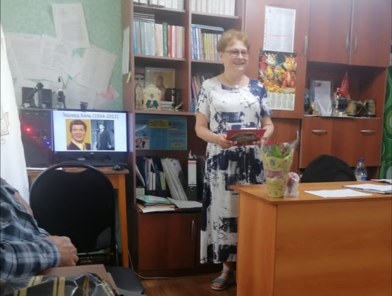 Участникам клуба «Светоч» рассказали о жизни и творчестве Эдуарда Анатольевича, о его военном детстве и жизненных трудностях. Природа подарила Эдуарду уникальный оперный баритон, но славы он добился на эстраде. Пик популярности исполнителя пришёлся на 70-80-е годы прошлого века, песни в его исполнении знали и пели в каждом уголке огромной страны. Перестройка и развал Союза негативно сказались на известности певца, его почти забыли. И если бы он не выложил в интернет незатейливую песенку из своего прошлого репертуара, то так и умер бы в забытьи. Именно эта композиция, появившаяся на просторах Сети в 2010-м, привлекла к Хилю современную молодёжную аудиторию. В течение встречи звучали песни в исполнении героя встречи.