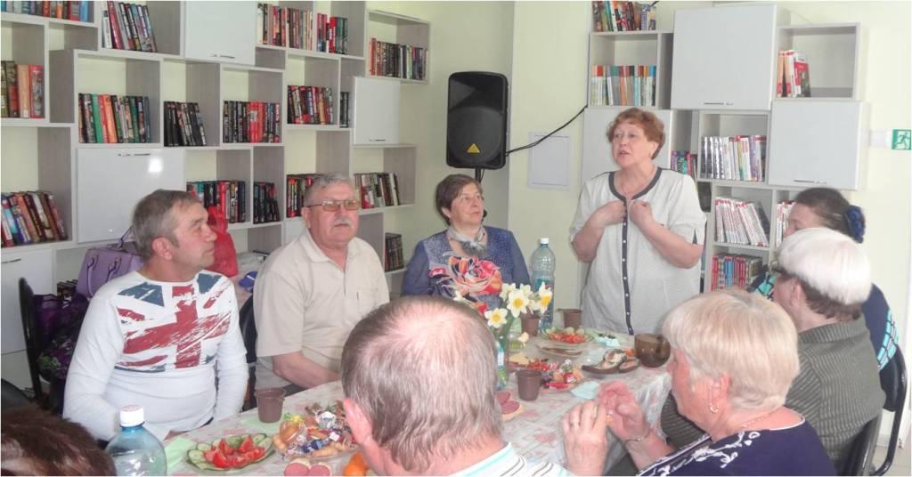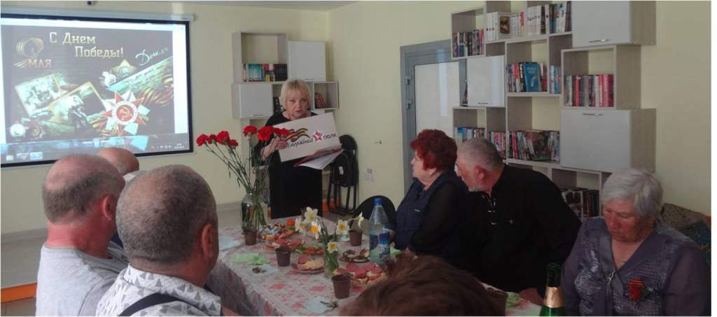 Библиотекарь Свиридонова Татьяна Николавна поздравила присутствующих с наступающим праздником День Победы, рассказала об истории акции «Бессмертный полк». Рагозик Вера Ивановна, Олег Григорьевич и другие участники клуба принесли портреты родственников, воевавших на полях Великой Отечественной, рассказывали о них. Под звуки метронома все вместе почтили память не вернувшихся героев войны. За чашкой чая весь вечер звучали стихи о войне и песни.
