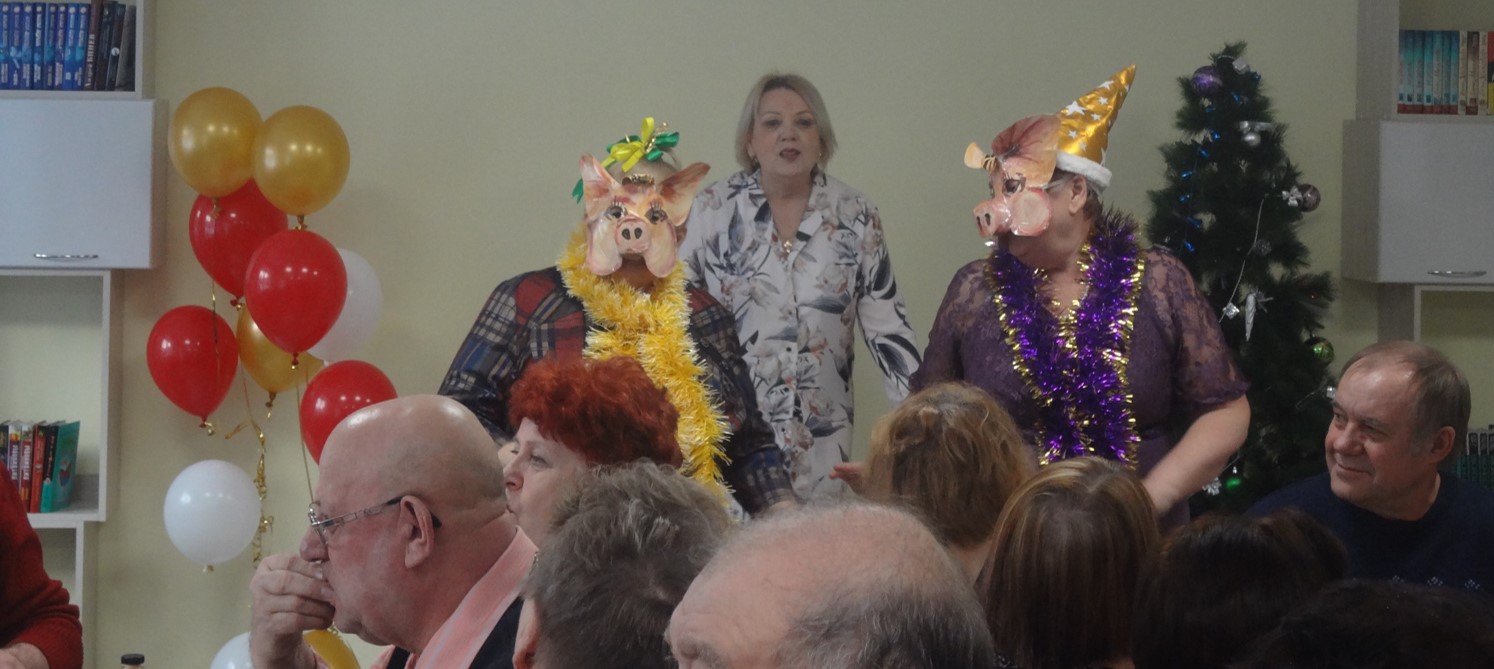 Библиотекари подготовили развлекательную новогоднюю программу с играми, конкурсами, загадками, викторинами, шуточными предсказаниями, частушками, песнями и танцами. Поздравить пенсионеров приходили Дед Мороз со Снегурочкой. А Баба Яга всех развеселила своими шутками-прибаутками. Ещё и хрюшки-подружки показали весёлый танец. Праздник получился весёлый, насыщенный и позитивный.