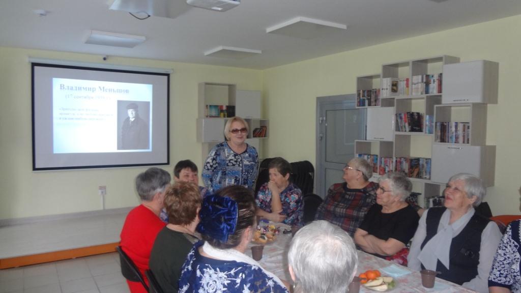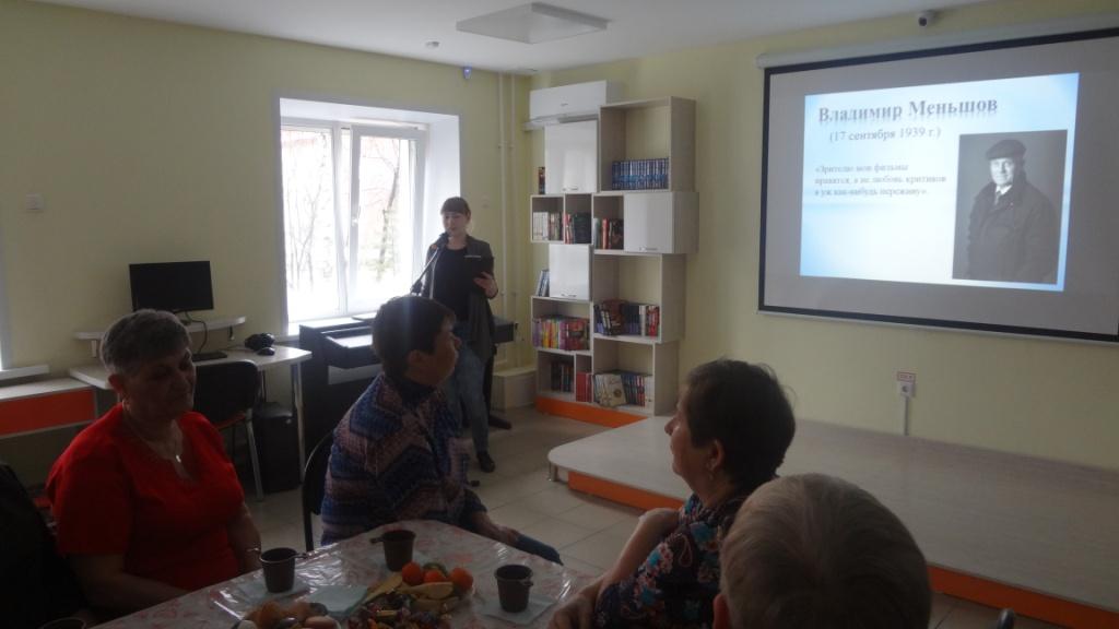 5 апреля в Информационно-досуговом центре состоялась кино-встреча «Каждый фильм – явление» для ветеранов клуба «Томусинец» ТАУ, посвящённая 80-летию режиссёра и актёра Владимира Меньшова и 115-летию со дня рождения актрисы Татьяны Пельтцер.