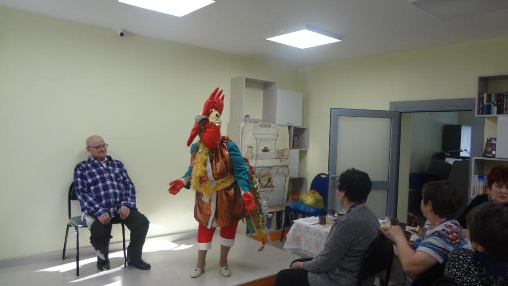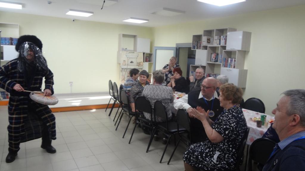 Развлекательная часть программы была наполнена песнями, стихами, юмористическими сценками. Пенсионеры в очередной раз показали свои таланты. Вера Рагозик в образе Бабы Яги провела игру «Предсказания». Супруги Устянские в роли Деда и Бабки представили сказку «Курочка Ряба». Устянский Владимир Тихонович изобразил Аллу Пугачёву, исполнив её песню «Настоящий полковник». Полковником была Бусыгина Валентина Павловна. Солоха угостила всех блинами собственного приготовления с разными начинками. Чертёнок провёл викторину, в которой проверил, насколько хорошо присутствующие помнят все встречи и мероприятия в клубе. Виктор Иванович Пахомов в образе Шамана провёл ритуальный танец и призвал духов Горной Шории охранять и оберегать дружный коллектив клуба «Томусинец».