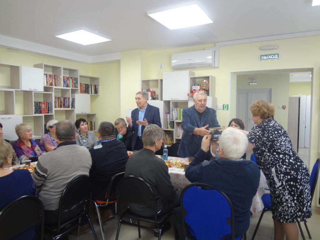 Открыла праздничную встречу библиотекарь Свиридонова Татьяна Николаевна и передала слово председателю Совета ветеранов ТАУ Бусыгиной Валентине Павловне, которая коротко познакомила с работой клуба, рассказала о мероприятиях, которые проводились за это время с ветеранами, поблагодарила свой дружный коллектив за работу. Она много лет возглавляла родную организацию, но недавно передала бразды правления Иваниной Наталье Денисовне, которая с большим энтузиазмом продолжает её дело.