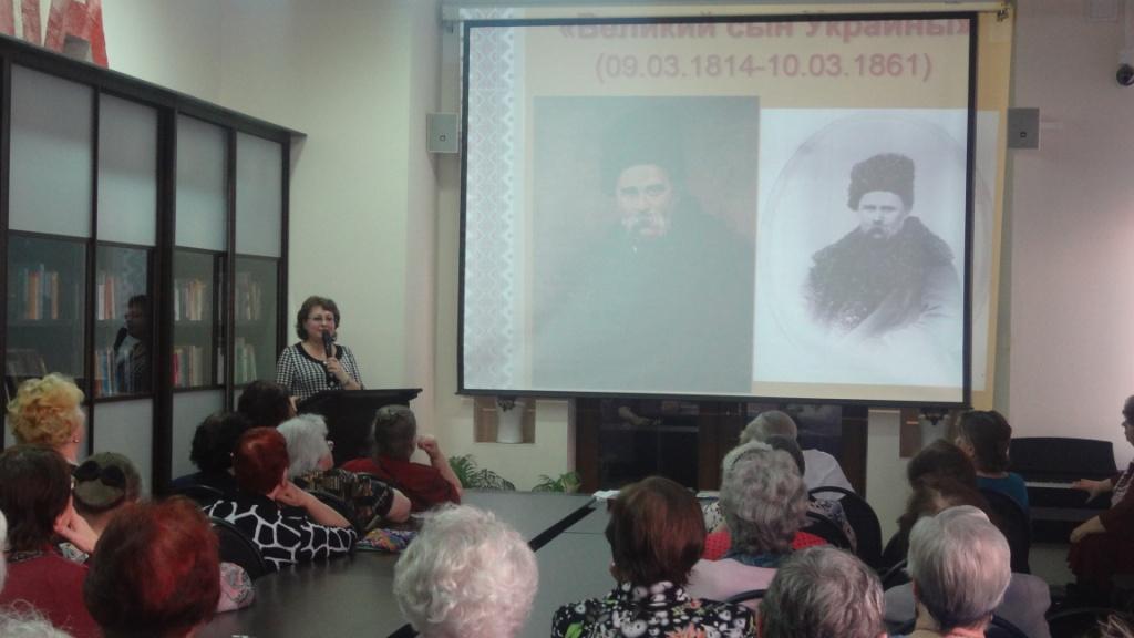 «Великий сын Украины» – литературно-поэтический час. 9 марта исполнилось 205 лет со дня рождения Тараса Григорьевича Шевченко. Библиотекарь Арзамаскина Ирина Владимировна с помощью слайд-презентации рассказала о жизни и творчестве этого великого поэта и писателя, родоначальника литературы Украины. Уделила особое внимание его жизни в течение многих лет на территории России, напомнила о самых известных произведениях поэта. Всех очень удивило выступление Подсмаженко Нелли Викторовны. Она, составив генеалогическое древо своей семьи, обнаружила родственные связи с Тарасом Григорьевичем! Со своим дядей написала об этом книгу! Потом ветераны читали стихи Тараса Шевченко.