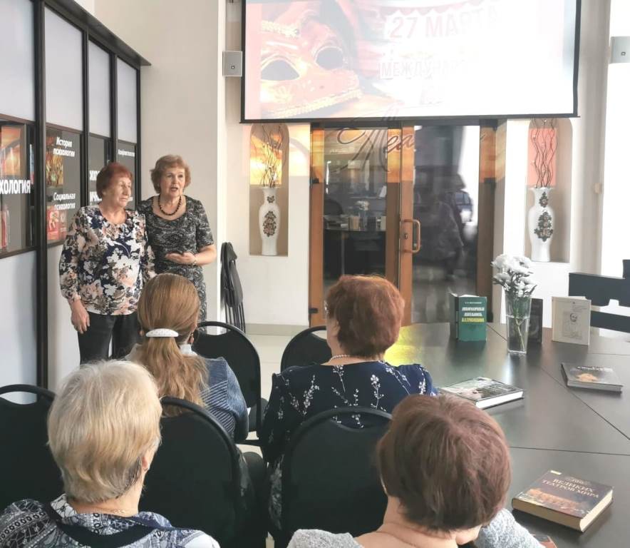 После концерта ведущая встречи, в преддверии Международного дня театра рассказала присутствующим об истории его возникновения, о различных видах театра, погружая аудиторию в увлекательное путешествие по миру сценического искусства.
