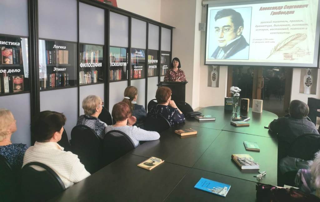 На встрече присутствующие узнали интересные факты из жизни писателя, услышали печальную историю любви Нино и Александра. Поговорили о Грибоедове, как о талантливом дипломате, о его вкладе в укрепление международных отношений России с Персией и Турцией. Познакомились с музыкальным наследием Александра Сергеевича, как композитора, послушав вальс ми минор.