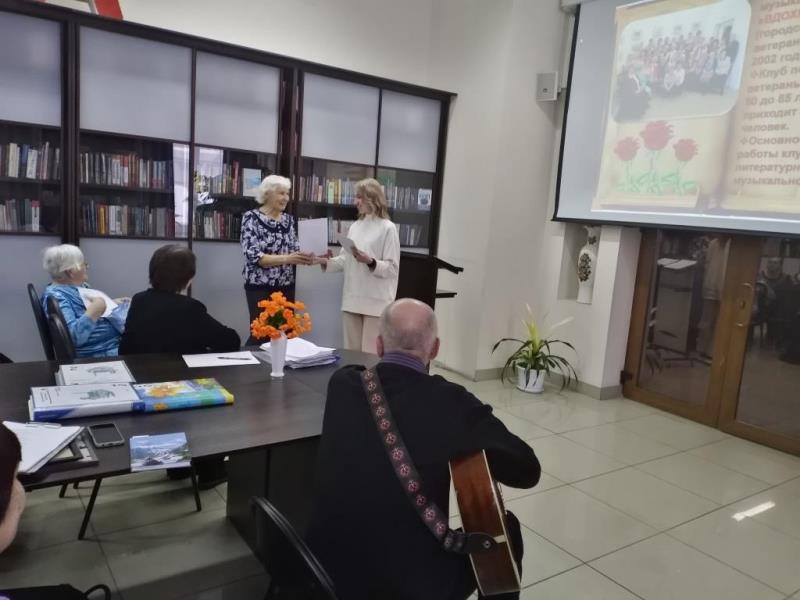 После того, как вспомнили об истории создания клуба, заместитель директора Суржикова Олеся Геннадьевна вручила старожилам Благодарственные письма за преданность клубу «Вдохновение» и сотрудничество с Центральной городской библиотекой.