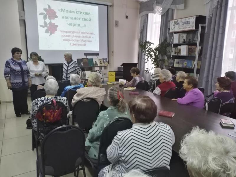«Не женщина, а птица…» – так назывался поэтический час к 130-летию со дня рождения Марины Цветаевой. Библиотекарь рассказала о личной жизни и творчестве поэтессы. Имя Марины Цветаевой навсегда останется в истории мировой поэзии 20-го века. Не только её стихи о любви, но и проза стали национальным достоянием. Многие творения Марины Цветаевой положены на музыку и стали романсами. На встрече прозвучали: «Мне нравится, что вы больны не мной», «За отрока», «Уж сколько их упало в эту бездну...». Ветераны познакомились с судьбой младшей сестры её – Анастасии и дочери – Ариадны. Цветаева опередила своё время... Глубина, масштабность её дарования только начинают осознаваться читателями.