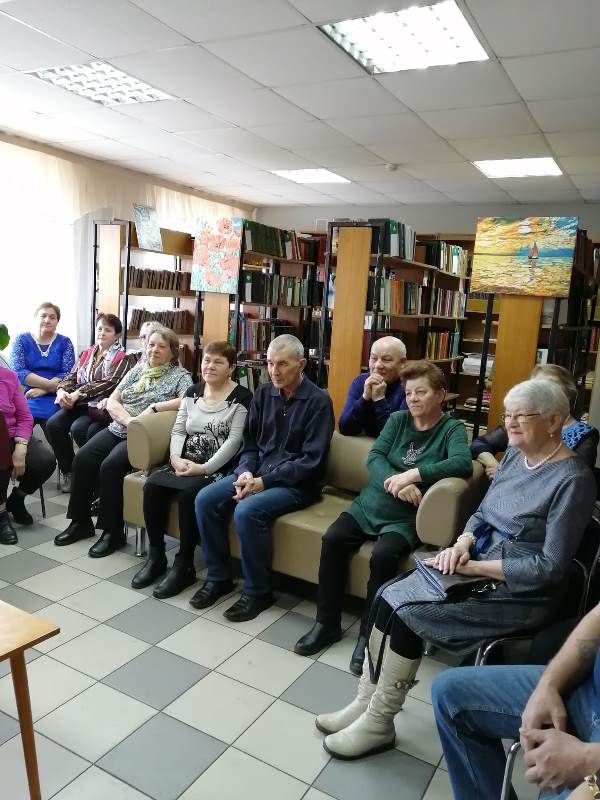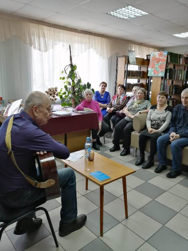На встречу был приглашен Меринов Сергей Владимирович руководитель междуреченского поэтического клуба «Ритм». Присутствующие поговорили об истории зарождения бардовской песни, о тех, кто стоял у её истоков, послушали песни о родном крае, о войне, о весне, о дружбе и любви.